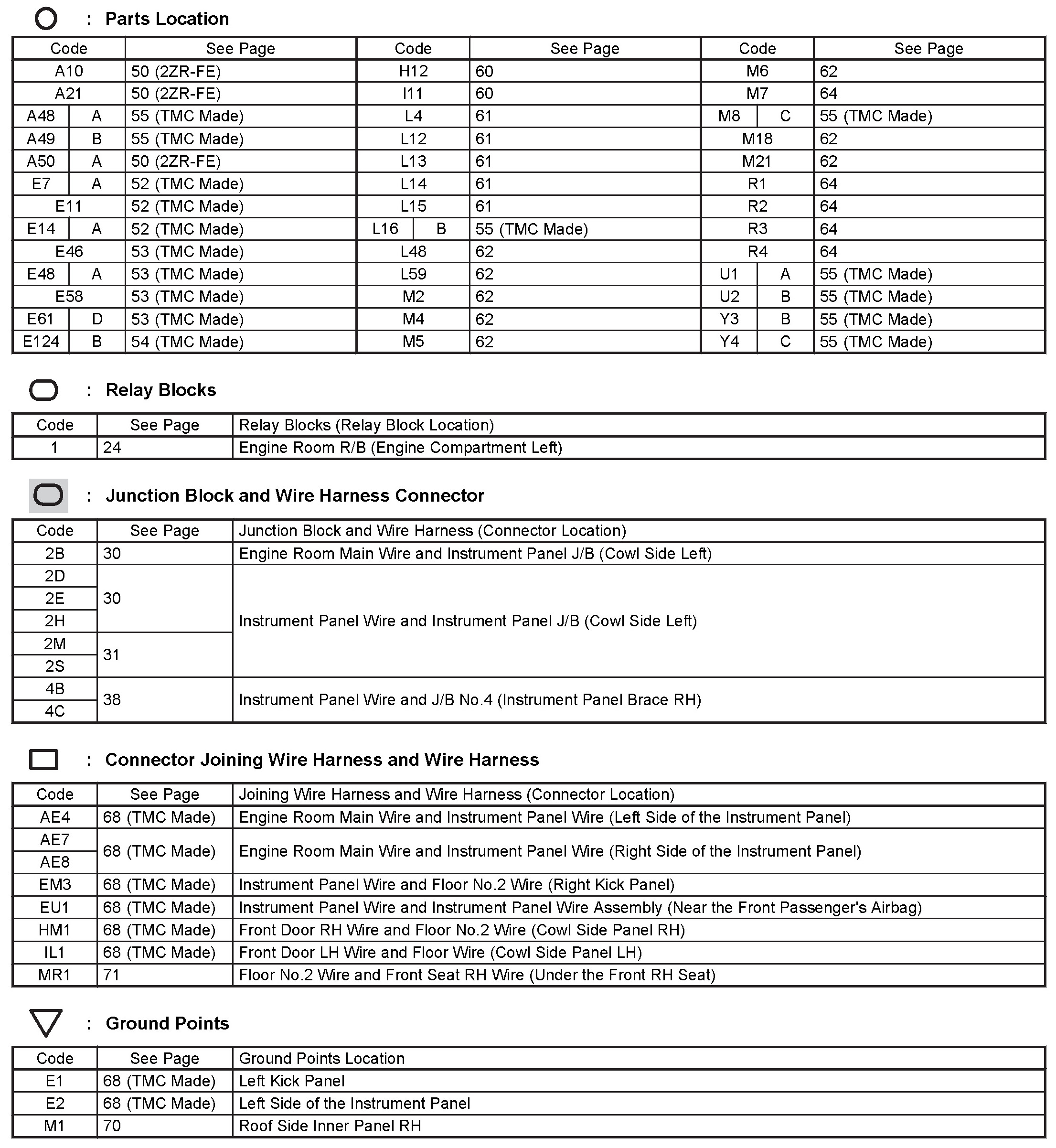 Locations: The locations of components, connectors, ground points, and splices referred to within these diagrams can be found at Vehicle Locations. Locations