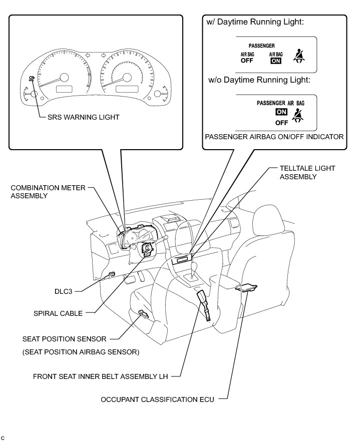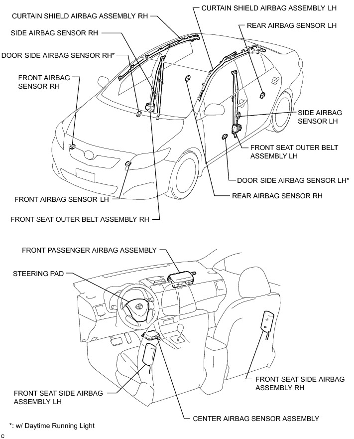 SUPPLEMENTAL RESTRAINT SYSTEMS: AIRBAG SYSTEM: PARTS LOCATION; 2013 MY Corolla [07/2012 -]