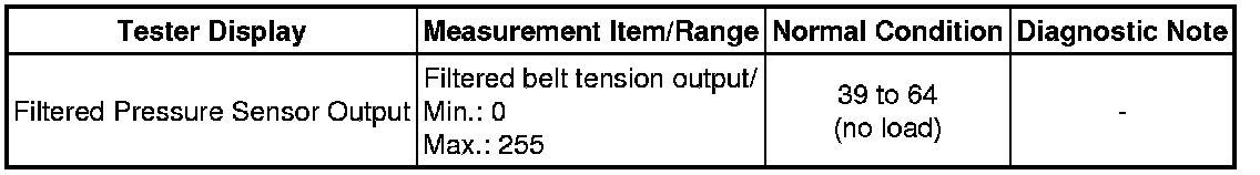 When there is no tension on the belt, 39 to 64 is displayed on the Techstream.