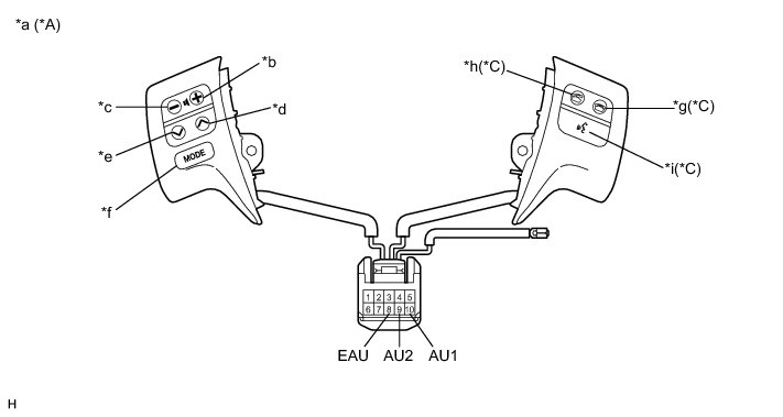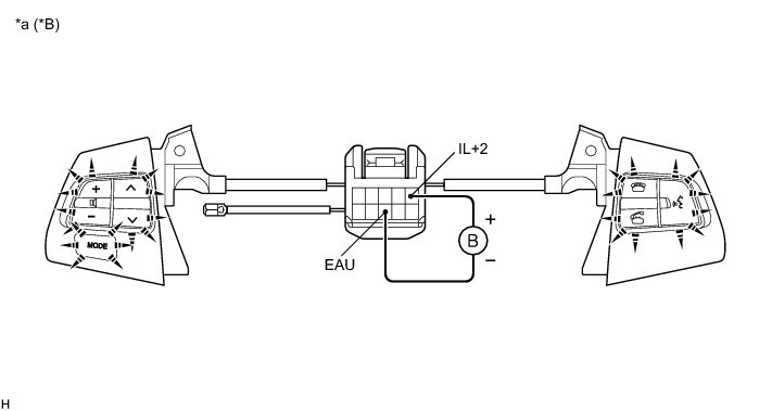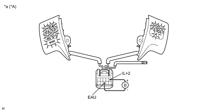(1) Connect a battery positive (+) lead to terminal IL+2 and a negative (-) lead to terminal EAU of the steering pad switch connector.