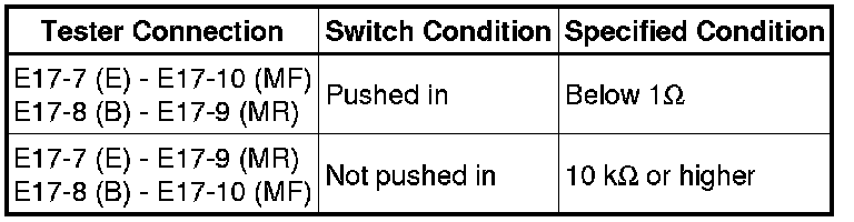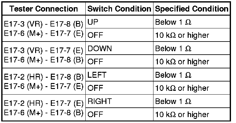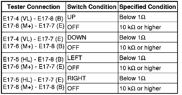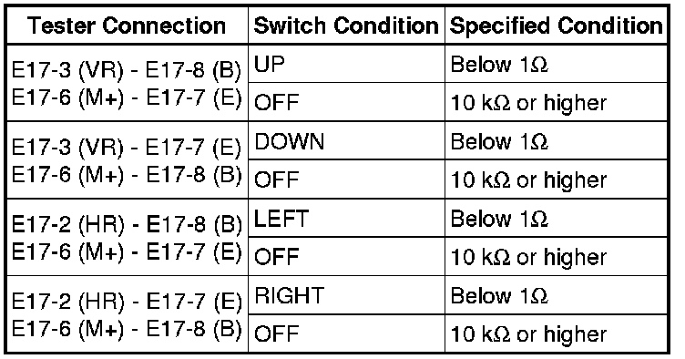 If the result is not as specified, replace the outer mirror switch assembly.