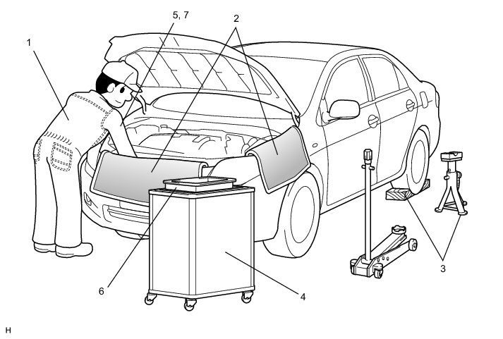 (b) JACKING UP AND SUPPORTING VEHICLE