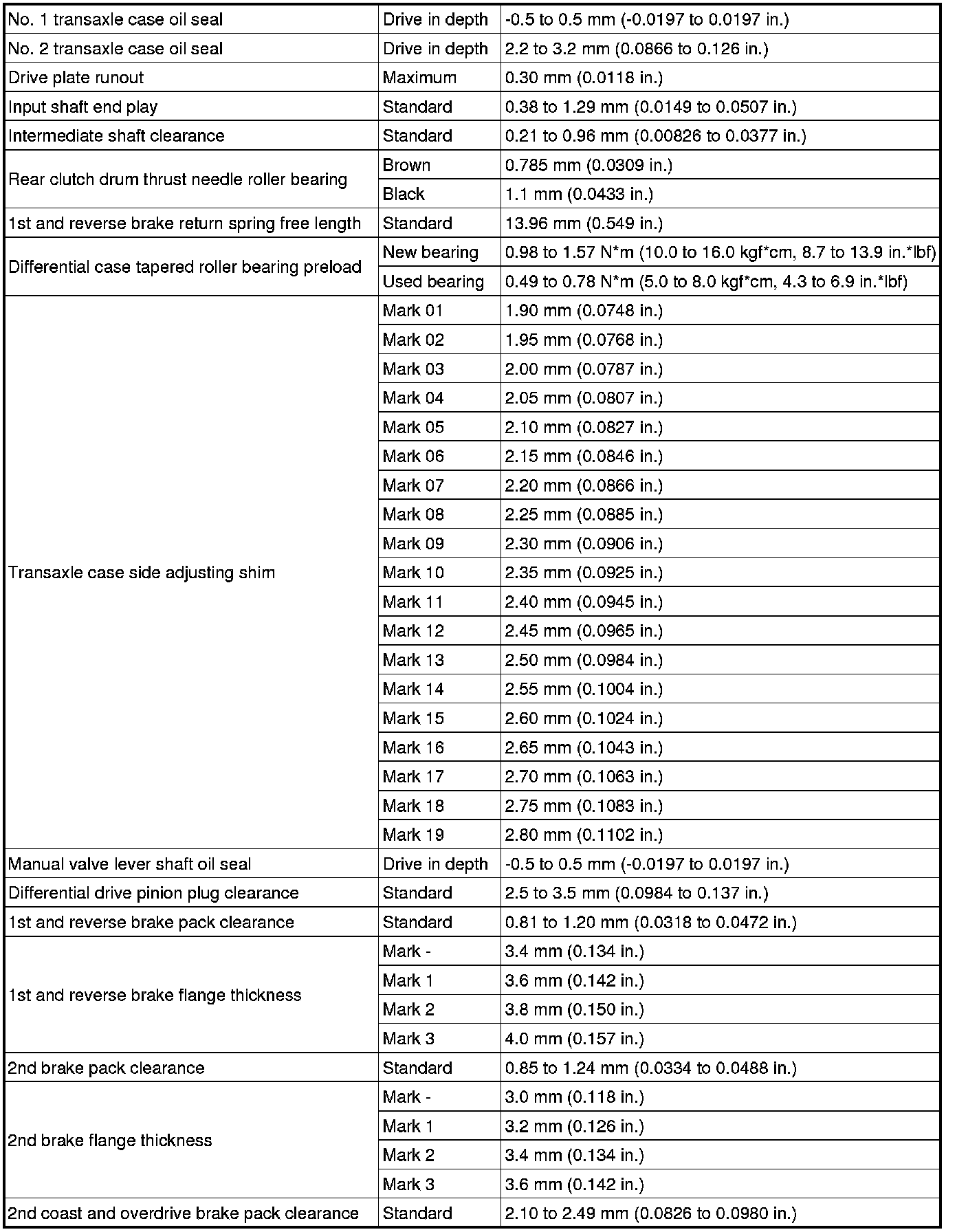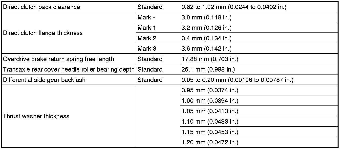 SPECIFICATIONS: U341E AUTOMATIC TRANSMISSION / TRANSAXLE: SERVICE DATA; 2013 MY Corolla [07/2012 -]