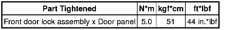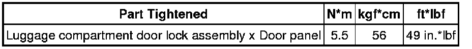 SPECIFICATIONS: DOOR LOCK: TORQUE SPECIFICATIONS; 2013 MY Corolla [07/2012 -]