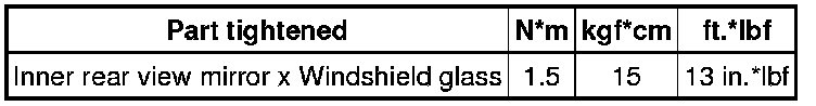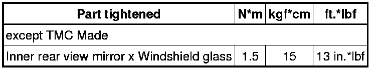 SPECIFICATIONS: MIRROR (INT): TORQUE SPECIFICATIONS; 2013 MY Corolla [07/2012 -]