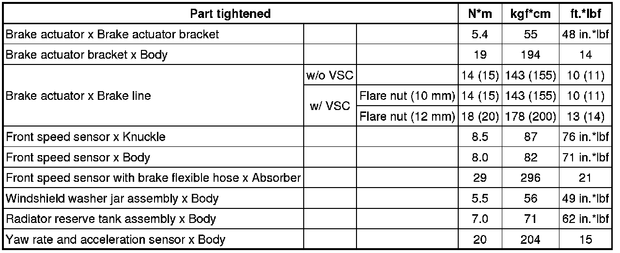 SPECIFICATIONS: BRAKE CONTROL / DYNAMIC CONTROL SYSTEMS: TORQUE SPECIFICATIONS; 2013 MY Corolla [07/2012 -]