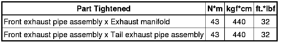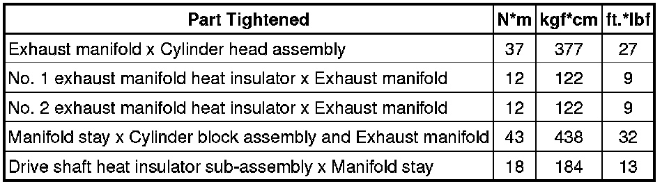 SPECIFICATIONS: 2ZR-FE INTAKE / EXHAUST: TORQUE SPECIFICATIONS; 2013 MY Corolla [07/2012 -]