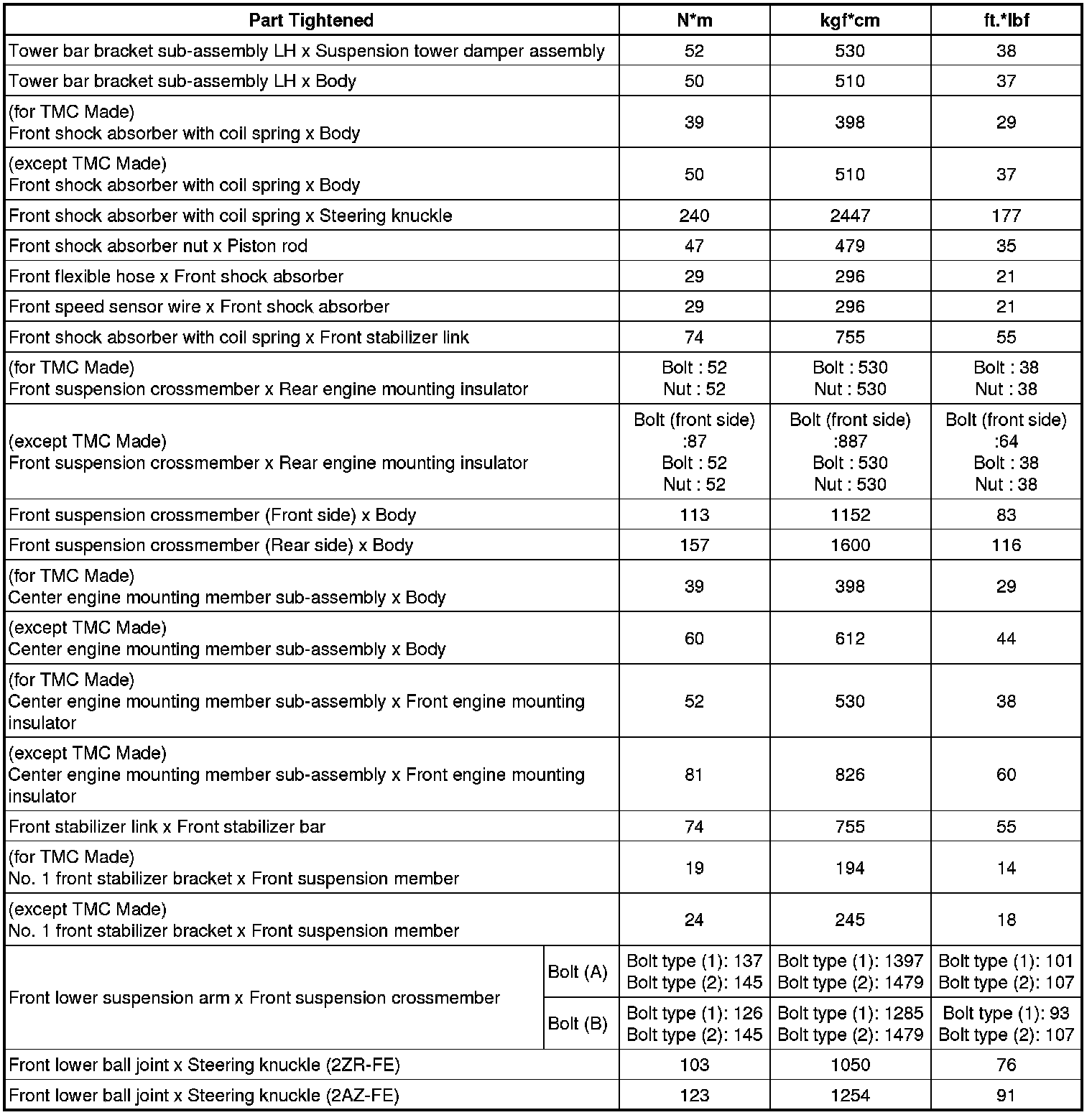 : TORQUE SPECIFICATIONS; 2013 MY Corolla [07/2012 -]