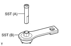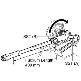 (f) Tighten the pulley by turning SST (B) in the direction shown in the illustration.