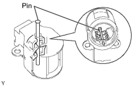 (a) While pushing the 2 brushes into the generator brush holder assembly, insert a 1.0 mm (0.0394 in.) pin into the brush holder hole.