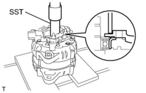 (b) Using SST and a press, slowly press in the generator coil assembly.