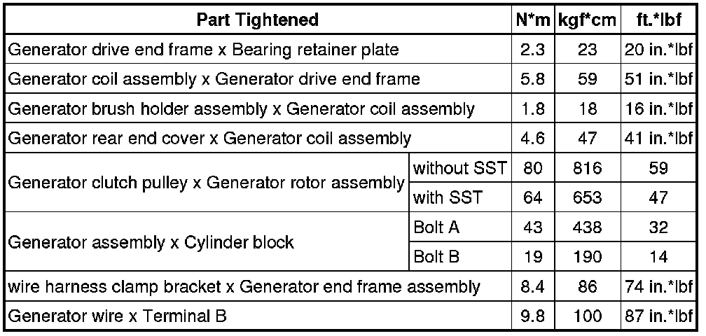 SPECIFICATIONS: 2ZR-FE BATTERY / CHARGING: TORQUE SPECIFICATIONS; 2013 MY Corolla [07/2012 -]