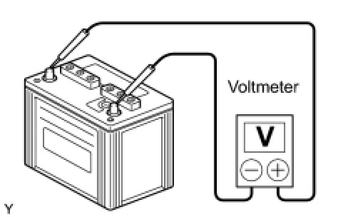 (3) Connect the positive (+) lead of the voltmeter to the positive (+) terminal of the battery.