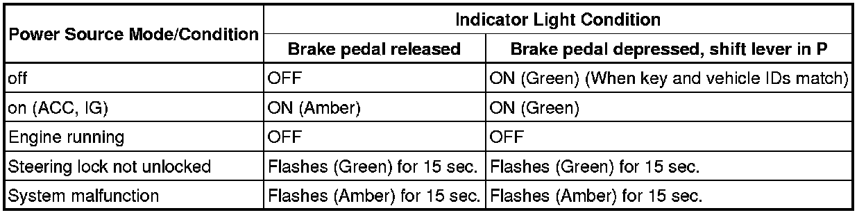 Engine start conditions or system malfunctions can be checked by the status of the engine switch indicator light.