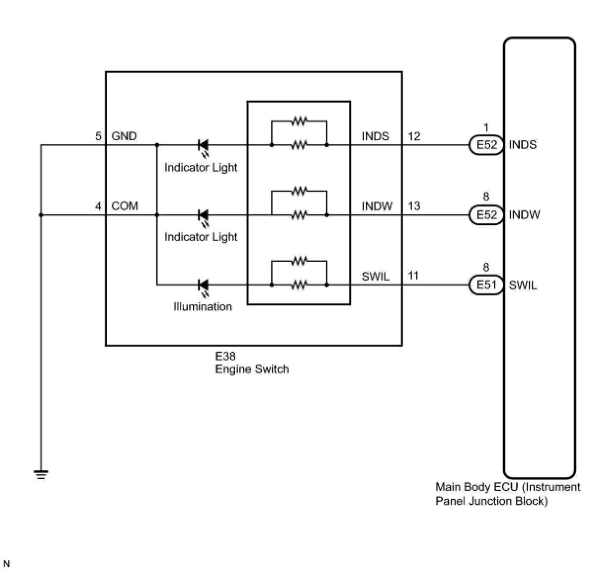 THEFT DETERRENT / KEYLESS ENTRY: SMART KEY SYSTEM (for Start Function): Engine Switch Indicator Circuit; 2013 MY Corolla [07/2012 -]