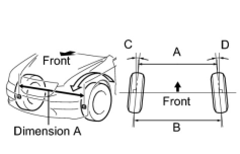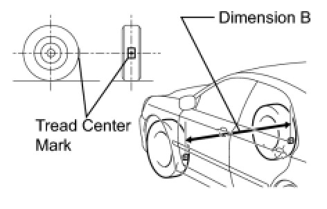 (d) Put tread center marks on the rearmost points of the front wheels and measure the distance between the marks (dimension B).