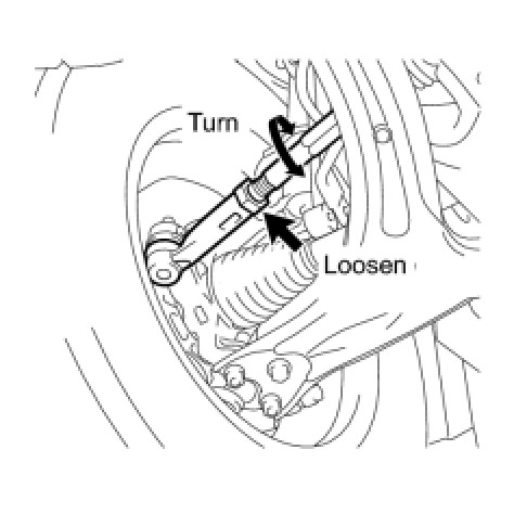 (d) Turn the right and left rack ends by an equal amount to adjust the toe-in to the center value.