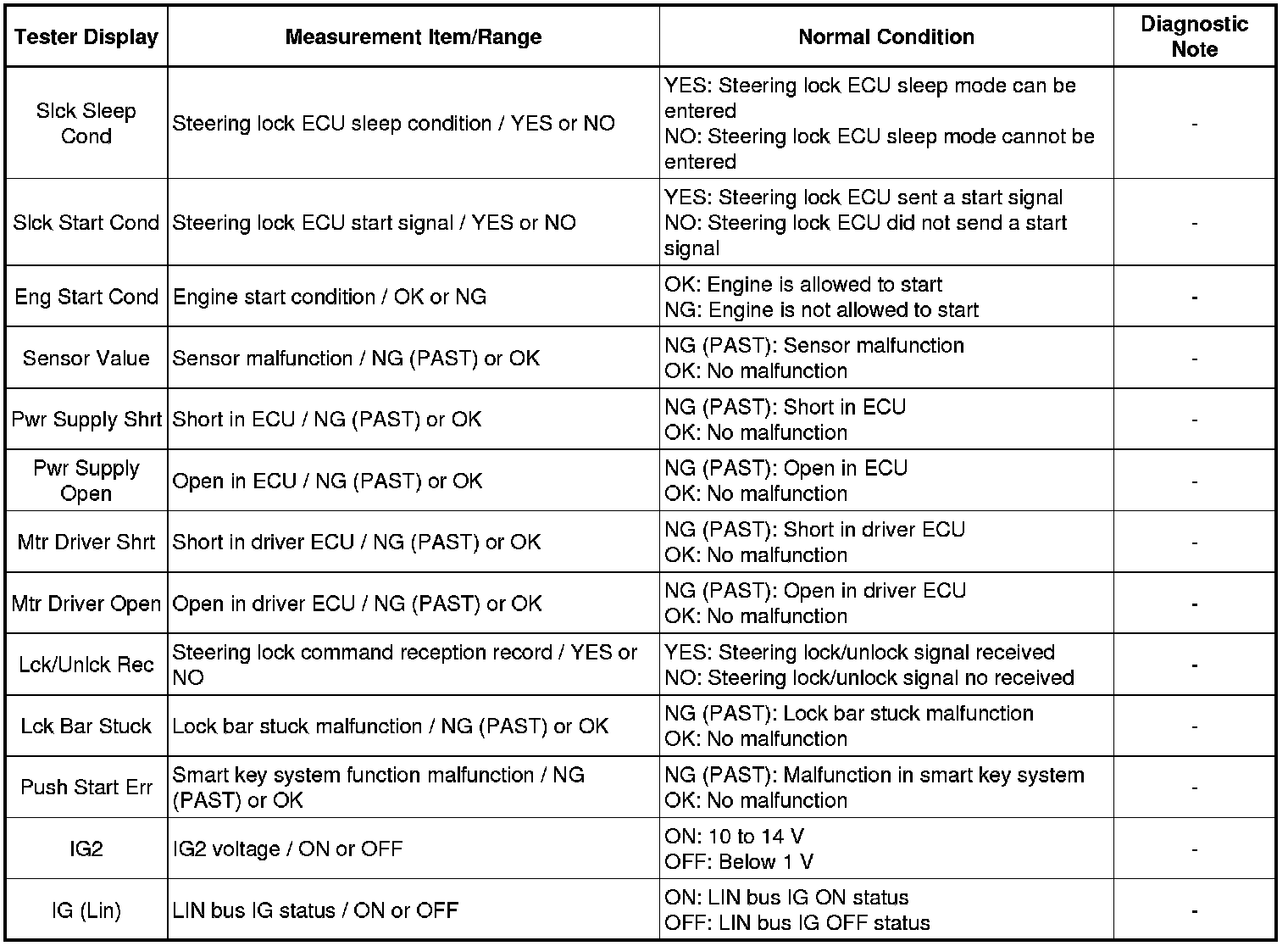STEERING COLUMN: STEERING LOCK SYSTEM: DATA LIST / ACTIVE TEST; 2013 MY Corolla [07/2012 -]