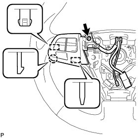 (3) Disengage the 2 pins and claw, and remove the steering pad switch LH.