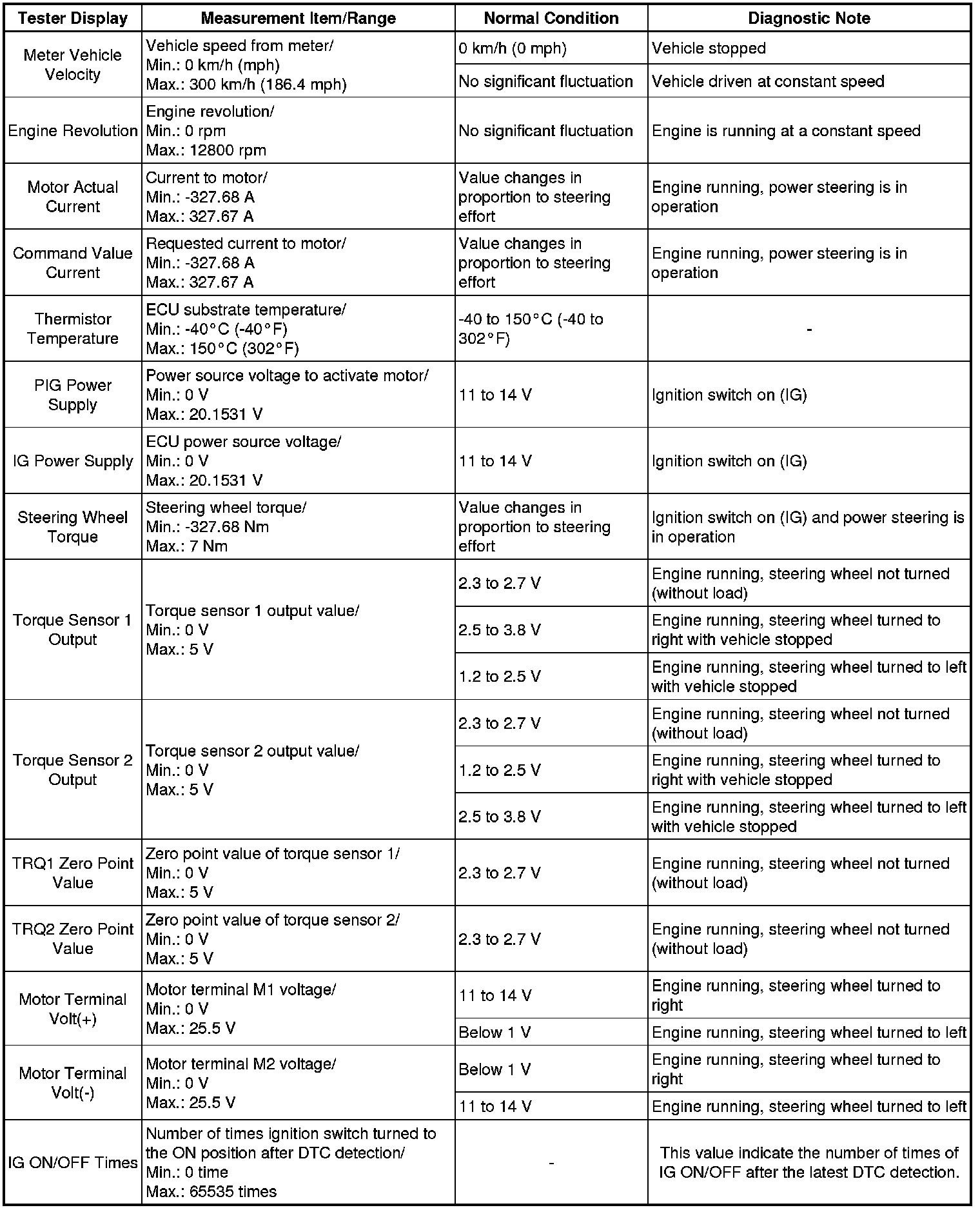 POWER ASSIST SYSTEMS: POWER STEERING SYSTEM (for 2ZR-FE): DATA LIST / ACTIVE TEST; 2013 MY Corolla [07/2012 -]