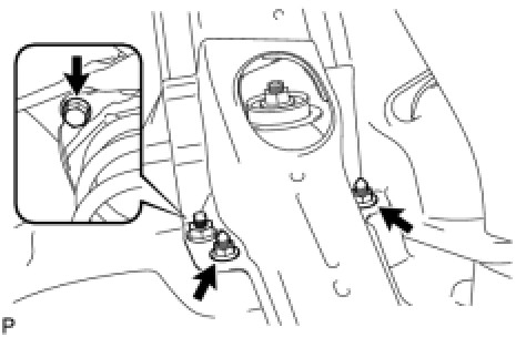 (c) Remove the 2 nuts from the rear shock absorber with coil spring (upper side).