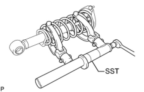 If the rear coil spring is compressed at an angle, using 2 SST will make the work easier.
