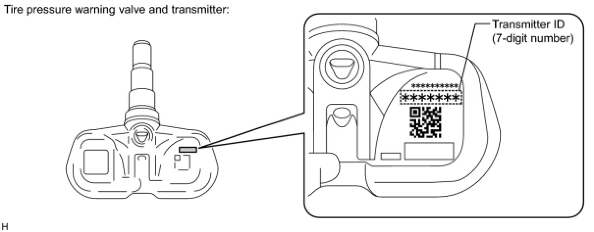 * The transmitter ID is written on the tire pressure warning valve and transmitter. It will be unable to be read after installing the tire pressure warning valve and transmitter on the tire and wheel. Therefore, take a note of the transmitter ID before installing the tire pressure warning valve and transmitter.