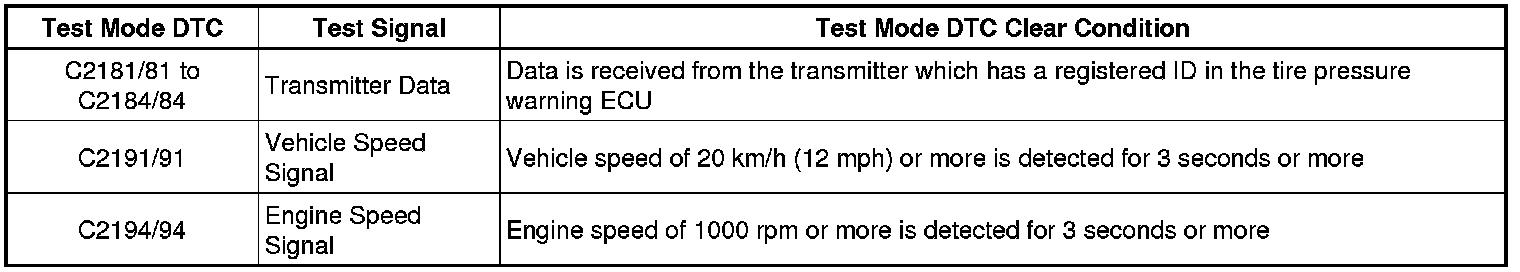 After completing signal check for each inspection item, the DTCs for systems that are determined to be normal by the tire pressure warning ECU will be erased.