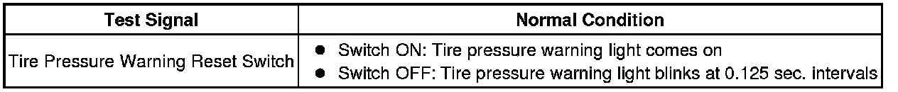* During TEST MODE, the system is not initialized by pushing the tire pressure warning reset switch. The circuit of the tire pressure warning reset switch can be inspected during this mode.