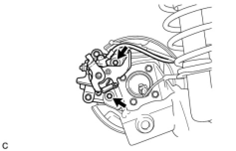 (a) Remove the 2 bolts, and separate the rear disc brake caliper assembly.