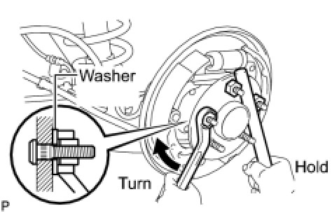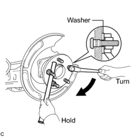 (a) Temporarily install the 2 nuts and 2 washers to the rear axle hub bolt as shown in the illustration.