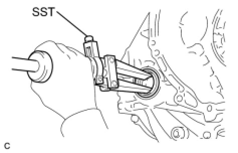 (a) Using SST, remove the No. 2 transaxle case oil seal from the transaxle housing.