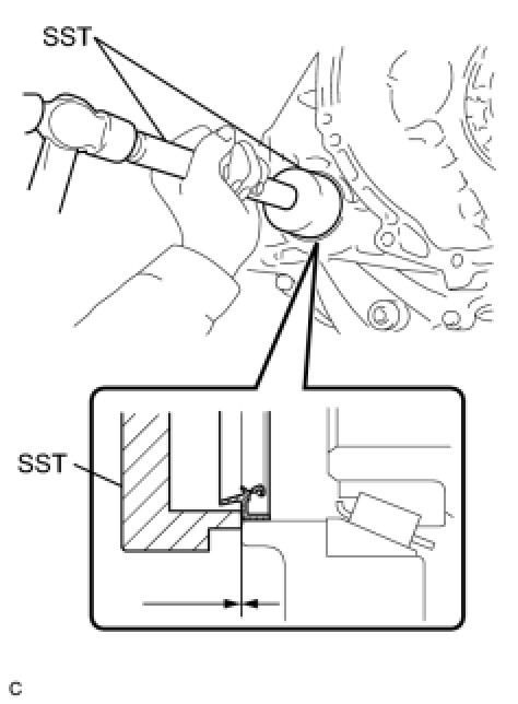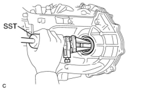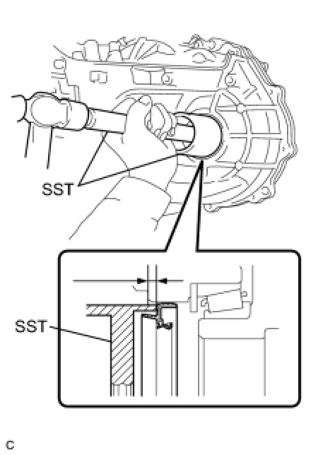(a) Using SST and a hammer, install a new oil seal to the transaxle case.