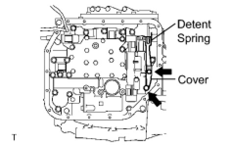 (c) Remove the 2 bolts and remove the detent spring cover and detent spring.
