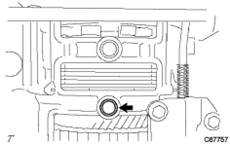 (a) Apply compressed air (392 kPa, 4.0 kgf/cm2, 57 psi) to the oil hole and remove the C-2 accumulator piston and the spring.