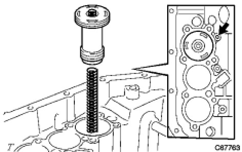 (a) Apply compressed air (392 kPa, 4.0 kgf/cm2, 57 psi) to the oil hole and remove the C-3 accumulator piston and spring.