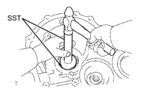 (a) Using SST and a hammer, remove the No. 2 transaxle case oil seal from the transaxle case.