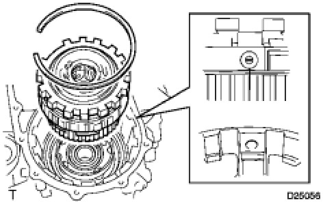 Make sure that the end gap of the snap ring is not aligned with the piston return spring claw.