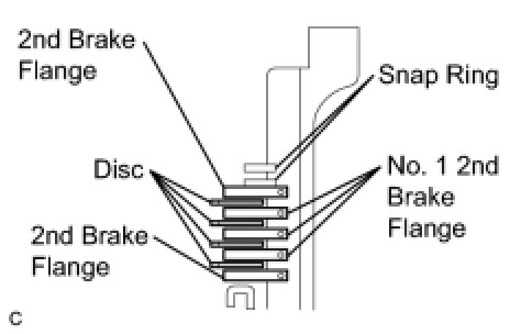 (a) Install the 4 discs, 3 No. 1 2nd brake flanges and 2 2nd brake flanges to the transaxle case.