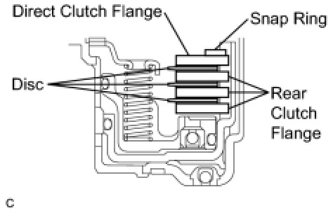 (c) Using snap ring pliers, install the snap ring to the direct clutch drum.