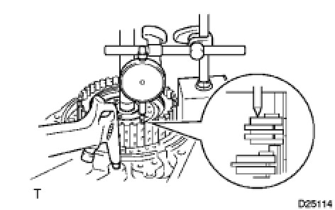Therefore, while performing the check, press on the input shaft of the direct and reverse clutch using a press or the equivalent so that the pressure is not applied to the direct and reverse clutch.