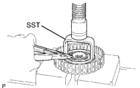 (b) Using SST, a press and snap ring pliers, install the snap ring to the input shaft.