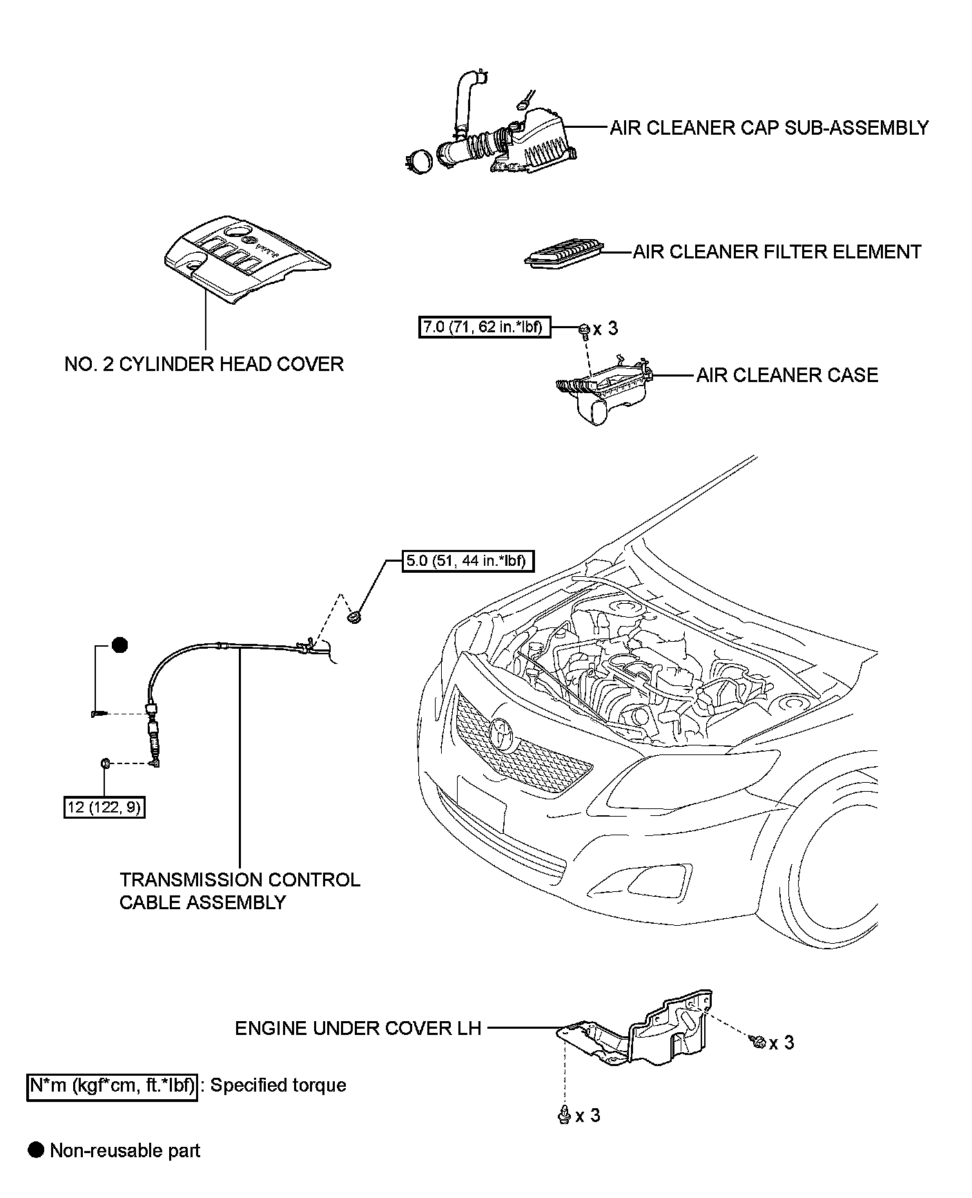 U341E AUTOMATIC TRANSMISSION / TRANSAXLE: TRANSMISSION CONTROL CABLE: COMPONENTS; 2013 MY Corolla [07/2012 -]