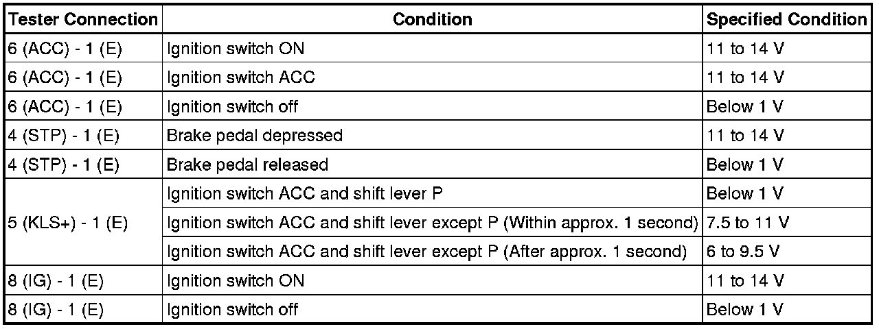 If the result is not as specified, replace the shift lock control ECU sub-assembly.