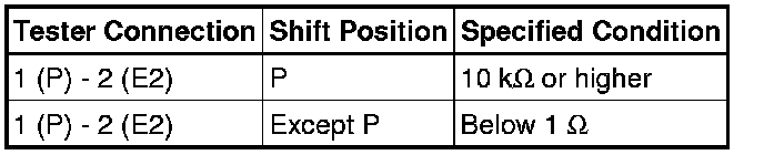 (b) Measure the resistance according to the value(s) in the table below when the shift lever is moved to each position.