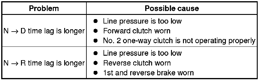 (5) Shift the lever from N to D position. Using a stop watch, measure the time from when the lever is shifted until the shock is felt.