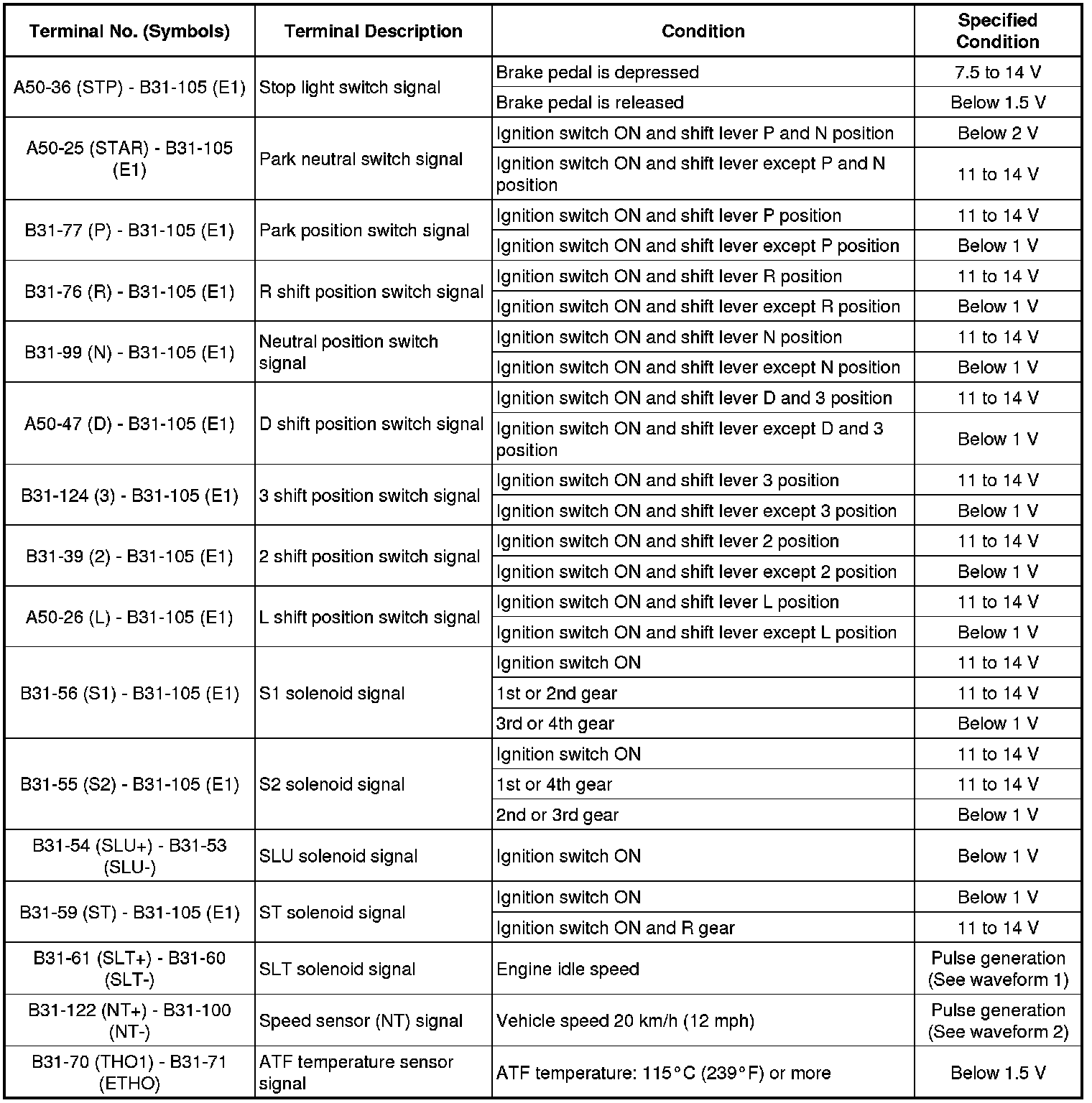 U341E AUTOMATIC TRANSMISSION / TRANSAXLE: AUTOMATIC TRANSAXLE SYSTEM: TERMINALS OF ECM; 2013 MY Corolla [07/2012 -]