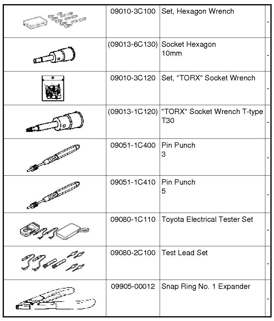 PREPARATION: U341E AUTOMATIC TRANSMISSION / TRANSAXLE: RECOMMENDED TOOLS; 2013 MY Corolla [07/2012 -]