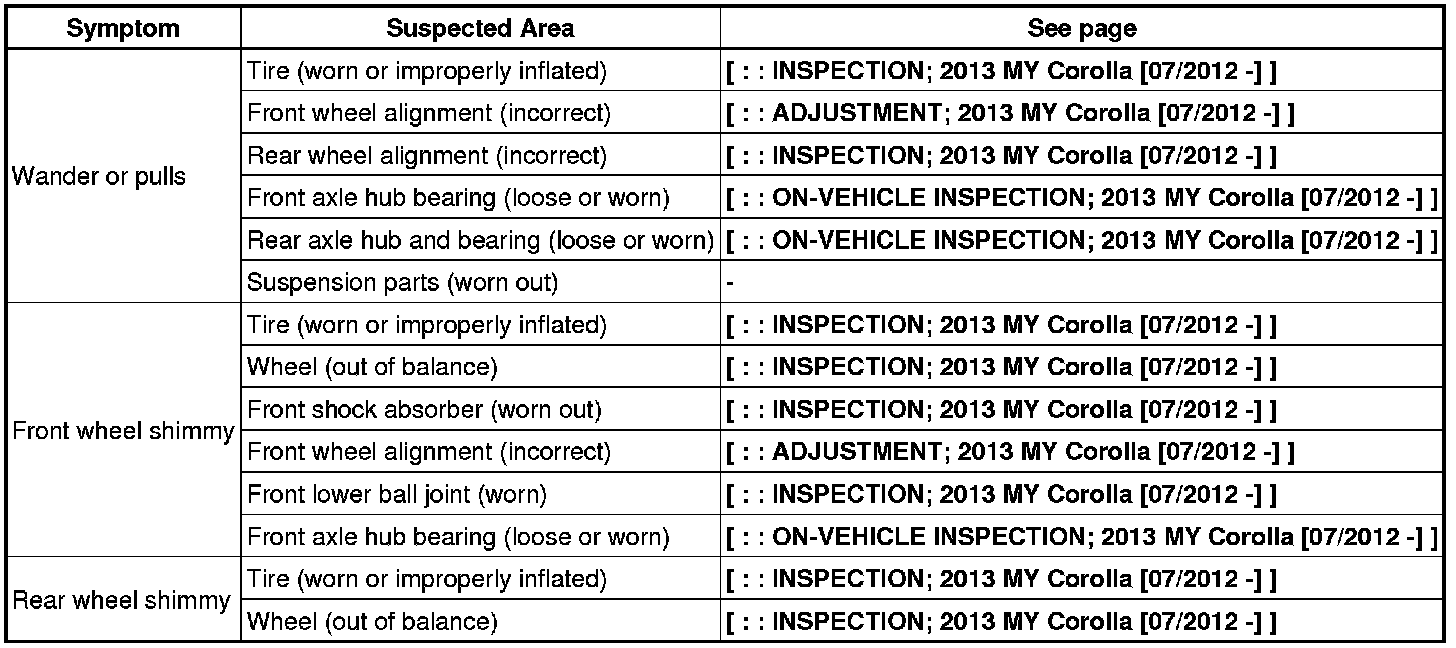 AXLE AND DIFFERENTIAL: AXLE SYSTEM: PROBLEM SYMPTOMS TABLE; 2013 MY Corolla [07/2012 -]