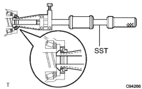 (a) Using SST, remove the transaxle case oil seal.